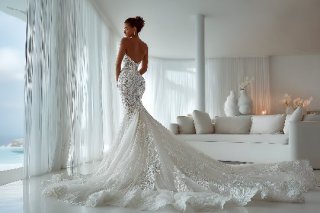 鱼尾拖尾婚纱是婚纱设计中最具戏剧张力的款式之一,其上半身贴合人体曲线的鱼尾剪裁,与下半身渐次展开的拖尾形成强烈视觉对比,既凸显女性腰臀比例,又赋予行走时如波浪般的...
