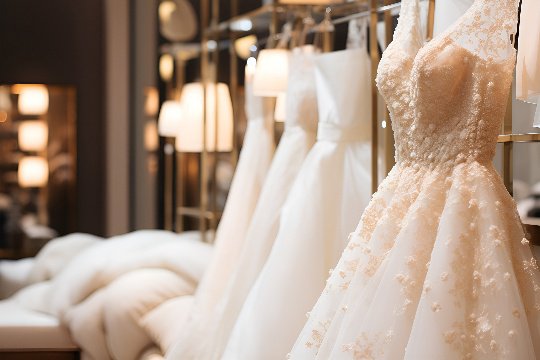 当然,新娘们在选择香槟色婚纱时,也需要注意一些搭配技巧。比如,香槟色婚纱可以搭配米色、香槟色或白色的头纱。这样的搭配不仅能够保持整体的协调性,还能突出婚纱的细节美。此外,新娘们还可以通过搭配有色腰带、裙裾、头纱,或是用彩色刺绣蕾丝装点,来增加婚纱的层次感和华美度。