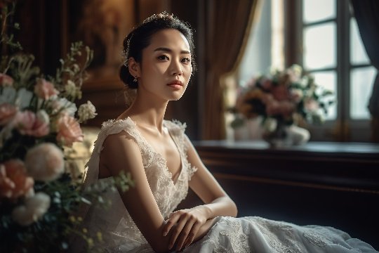 3. 发型:新娘可根据婚纱款式和个人喜好选择合适的发型。例如,长发新娘可选择盘发,短发新娘则可选择束发或马尾。