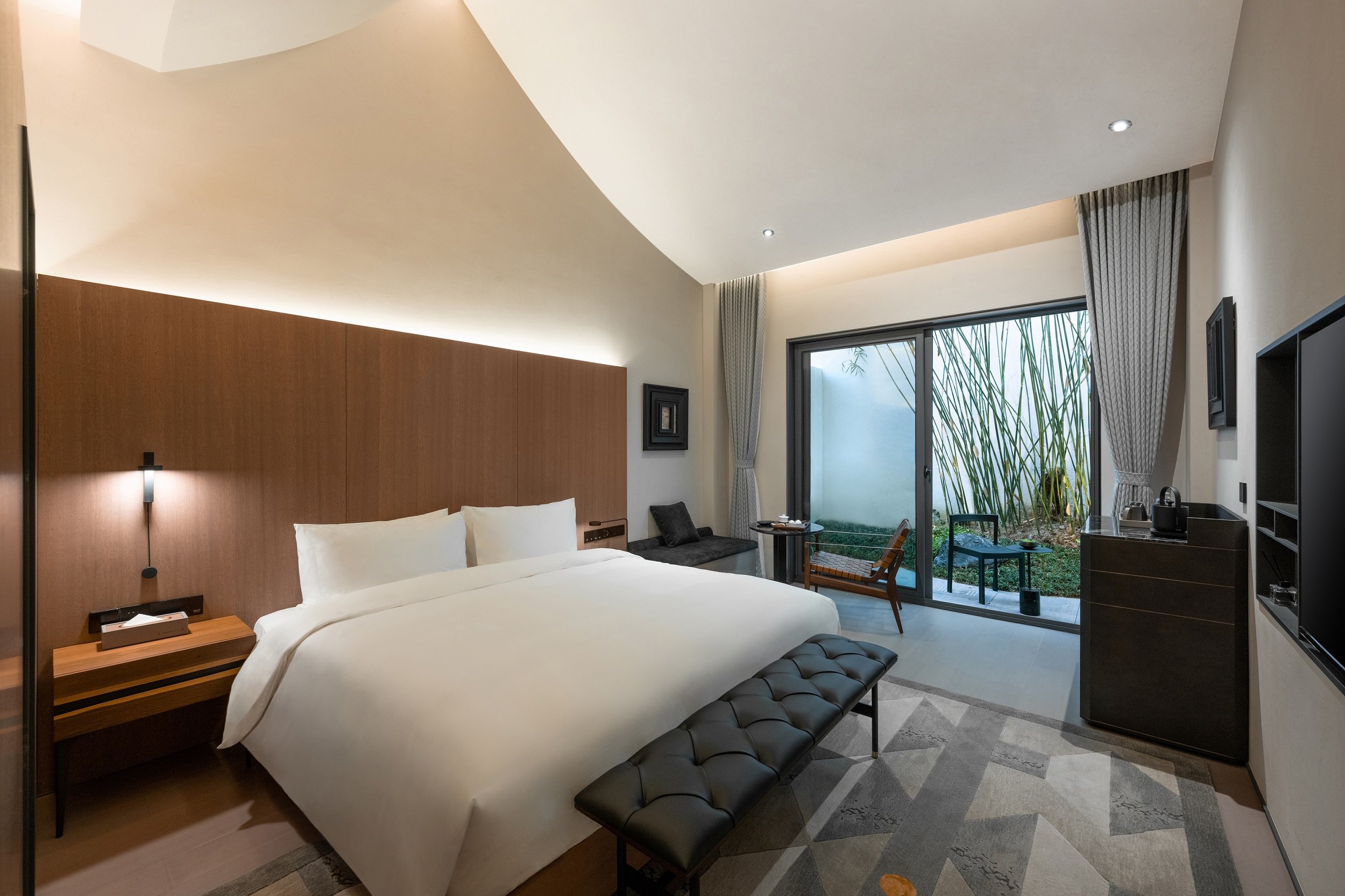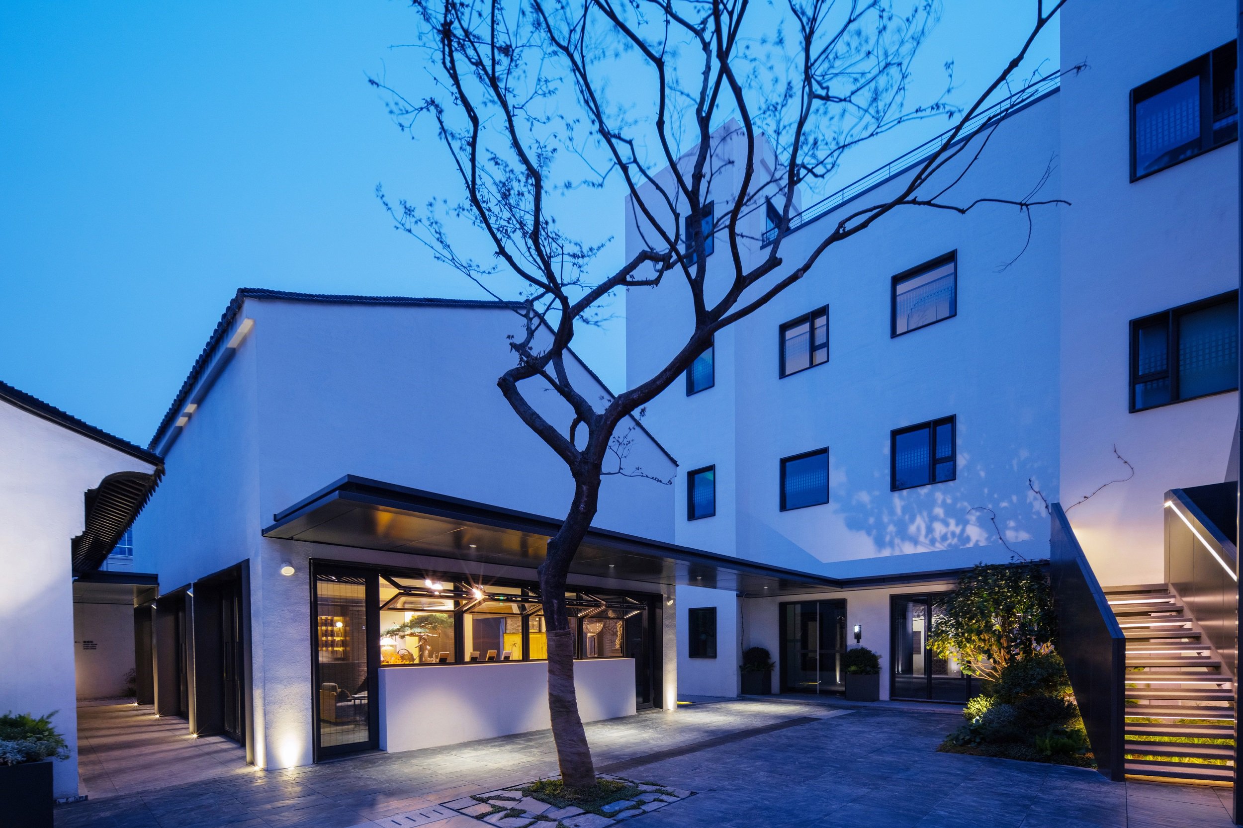 酒店占地面积约2200㎡,共有8幢建筑,设有16间雅致客房,酒店整体规划与建筑由庄子玉设计,重新整合了古建散点与商圈街区的空间序列;室内与景观则由厐喜操刀,营造雨打芭蕉、瞻太湖石、江清月近、品碧螺春等典型的江南意象图景,诠释酷江南之美。