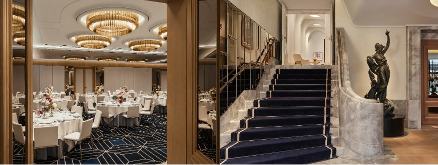 步入恢弘的酒店大堂,首先映入眼帘的是前银行大楼的经典遗迹,如雕刻精美的楼梯、弧形天花板和保存完好的壁画,为宾客打造了一个品味独具、令人流连忘返的空间。