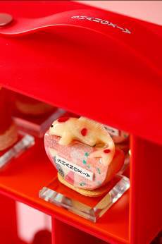 灵感源于SHANG XIA上下春鲤印花丝巾,将纷繁景致错落铺陈于方寸丝巾上,灵动可掬的年年有「鱼」,拓印出饱满的新年韵致。清雅微涩的手碾抹茶,搭配经典的相思红豆,带来绽放舌尖的东方韵味。