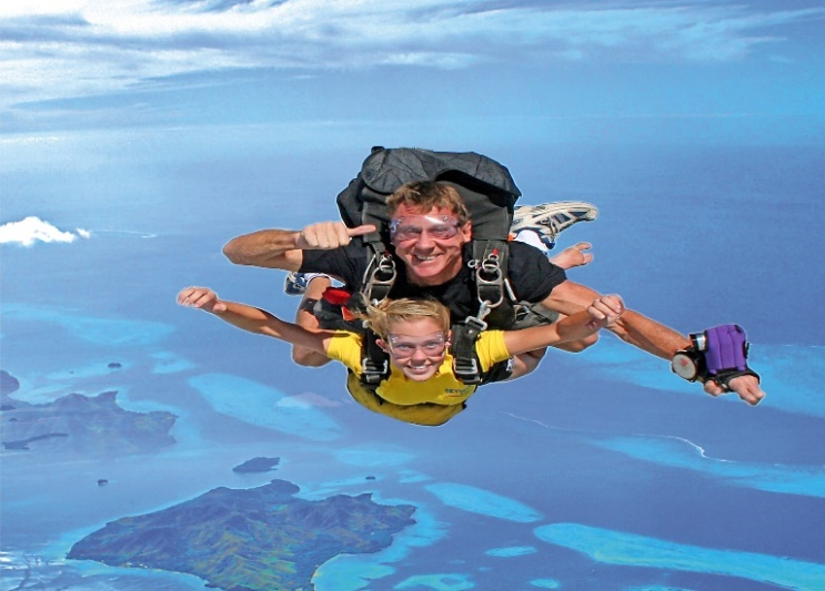 斐济的高空跳伞为情侣们提供了一次独特的浪漫冒险体验。乘坐飞机升至13,000英尺的高空,你们将手牵手一起跃出飞机,迎接令人心跳加速的自由落体。在斐济跳伞,可以俯瞰斐济群岛的绝美景色,包括碧蓝的海洋、洁白的沙滩和郁郁葱葱的热带雨林。降落伞展开时,缓慢的降落带来宁静的感受,完美地衔接了激动人心的高空跳跃。着陆后,你和心爱的人可以在斐济的海滩上共享香槟,庆祝这次充满激情与浪漫的冒险,留下美好的回忆。
