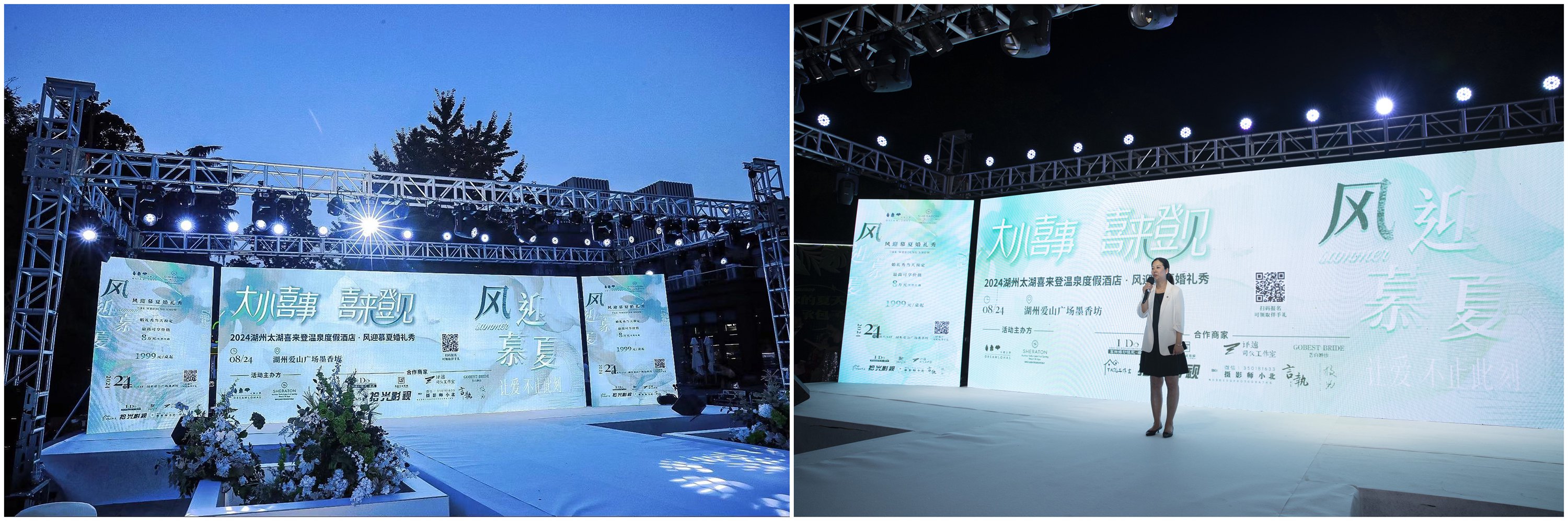 2024年8月24日“风迎慕夏”湖州喜来登酒店2024年婚礼秀在湖州爱山广场墨香坊/湖州太湖喜来登温泉度假酒店大宴会厅圆满举行。