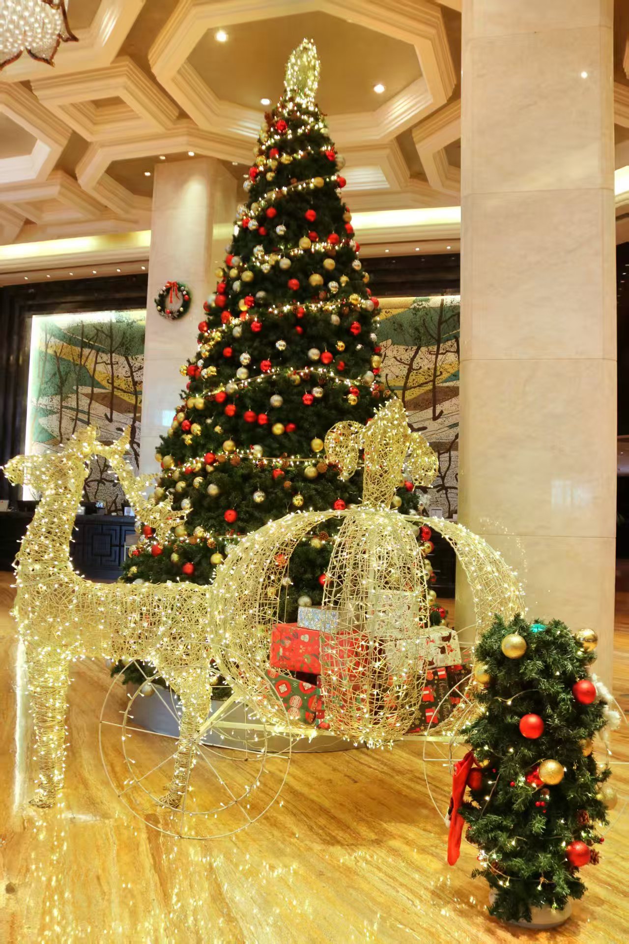 仪式最令人期待的时刻终于到来。在主持人的邀请下,酒店管理层成员与特邀嘉宾共同登台,在全场宾客热切的目光中,一同开启点亮圣诞树的倒计时。随着"三、二、一"的齐声倒数,璀璨的星光瞬间绽放,精心装饰的圣诞树焕发出夺目的光彩,与现场宾客的欢呼声交织成一幅动人的节日画卷。这一刻,象征希望与祥和的灯光不仅照亮了整个大堂,更温暖了每个人的心房。