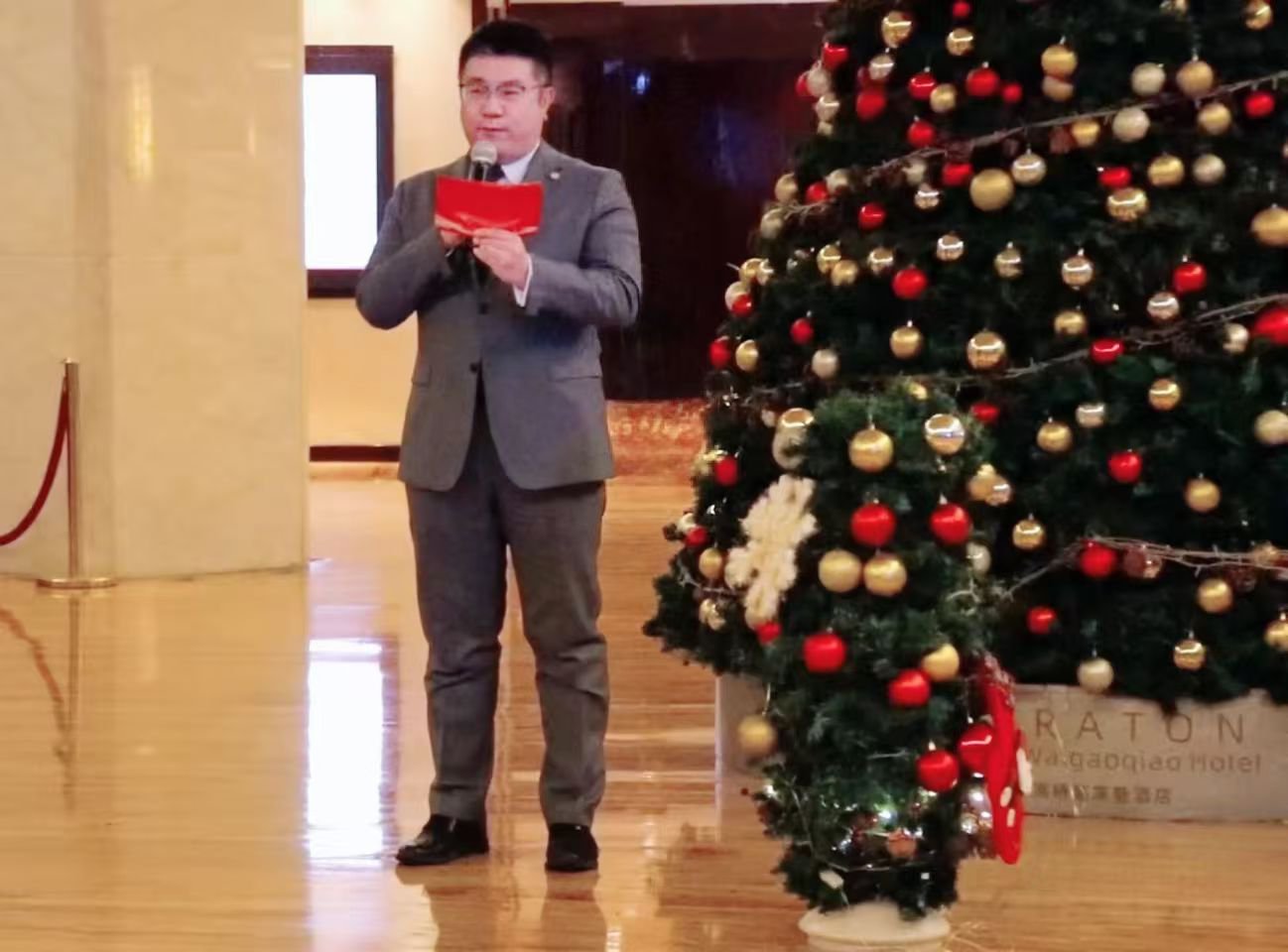 傍晚时分,酒店大堂早已洋溢着浓厚的节日气息。在悠扬的圣诞乐曲声中,宾客们陆续抵达,在精心布置的签到区留下对这个特别夜晚的期待。活动正式开始后,酒店管理层发表致辞,向所有到场嘉宾表达诚挚欢迎。圣诞是关于陪伴、分享与希望的节日。对上海外高桥喜来登酒店而言,点灯仪式更是一份坚守与传承。我们希望通过这束温暖的光芒,为奔波的旅人点亮归途,为相聚的亲友增添暖意,也为这座城市注入冬日的浪漫。