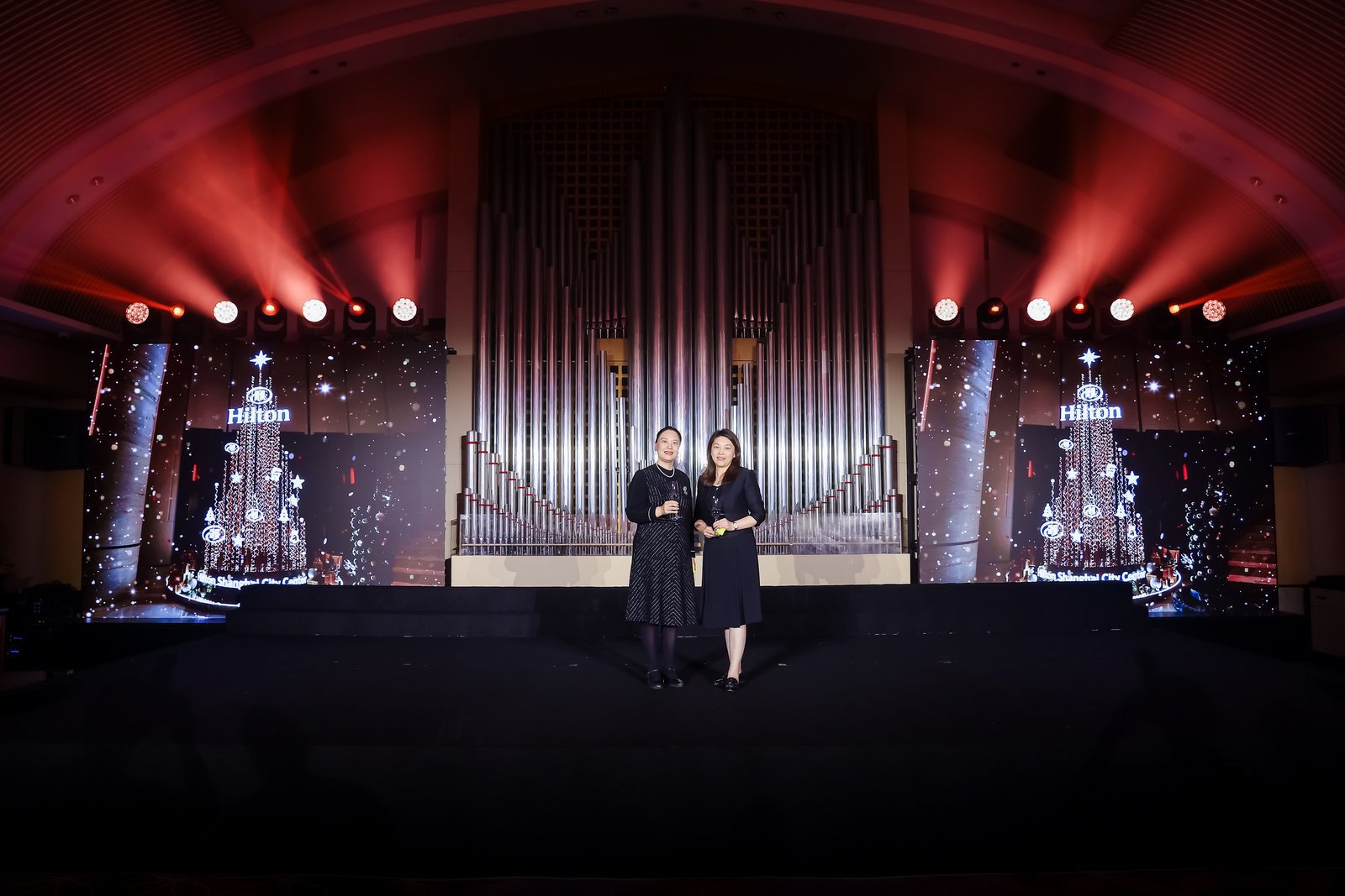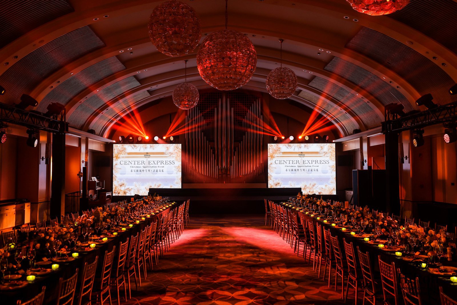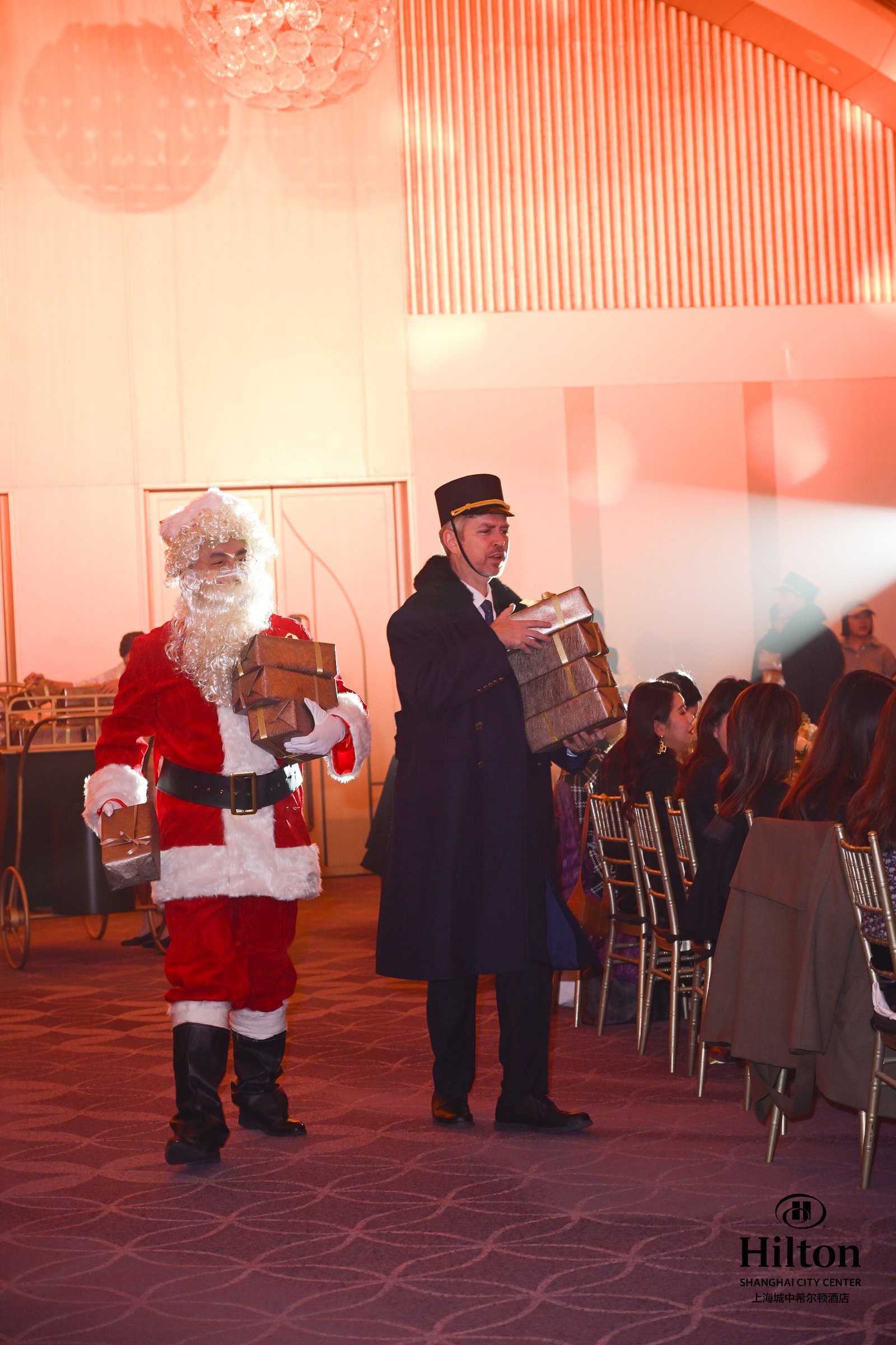 今年点灯仪式的核心主题“CENTER EXPRESS”,酒店通过灯光、音乐、陈设与动线重构“旅途的情绪”,在这一夜,让每位宾客都以另一种方式抵达城市中心。大堂在光影流动间化作旅程的起点,宛如冬夜初启的序章;康文幼儿园小朋友的清澈歌声随之响起,为这段旅程添上一笔最纯真的序曲。晚宴会场则以味蕾串联沿途的故事与站点;贯穿全场的金色圣诞树与车票元素,以轻盈而富有故事感的细节,唤起对城市探索的浪漫想象。当灯光点亮的那一刻,这段属于上海城中希尔顿酒店的圣诞旅程也随之徐徐展开。