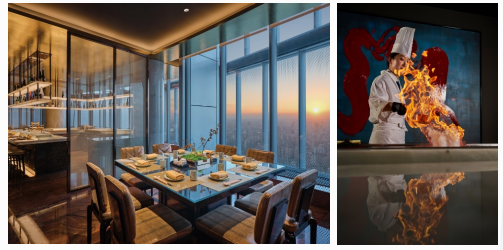 春粤融鲜,匠心呈筵。锦筵中餐厅由锦筵厨师长黄思成师傅执掌,他以岭南风物为灵感,以现代笔触创新诠释粤式风味,深耕正统粤式烹饪技艺的同时,打破传统边界,甄选岭南春味与环球山海珍材,全新推出多款春季粤式套餐,为云端食客打造兼具精巧口感与醇厚风味的粤式春味盛宴。黄思成师傅始终秉持初心,他曾言:“粤菜不止于味觉艺术,更是贯通传统与当下的文化桥梁。”在他的匠心烹制下,每一道菜品都兼顾传统底蕴与现代审美,让粤味在云端焕发新生。松茸竹笙茶壶汤清鲜回甘,松茸的醇厚与竹笙的脆嫩完美融合,温润滋养,一口解锁春日元气;大红袍脆皮乳鸽皮脆肉嫩、汁水丰盈,咬下瞬间鲜汁迸发,大红袍的茶香点缀其间,解腻又提味;陈皮文火牛小排慢炖入味,绵密软糯,陈皮的果香与牛肉的醇香交织,悠长回甘。