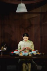 在繁华都市五角场的一隅,有一个特别的茶苑,这里翠竹摇曳,流水潺潺,自然的韵律将都市喧嚣挡在九霄云外。 挑高15米的中庭设计,搭配极简原木色,点缀的红色店标中和绿色空间...