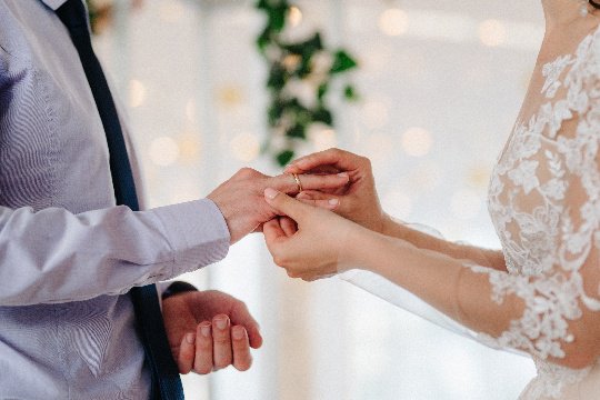 在婚礼上,新郎新娘面对面站立,右手拿着戒指,放在胸前,离心脏最近的地方。这个动作的含义深刻,它表示新人愿意将对方放在心中最重要的位置,愿意用全部的真心去爱对方、呵护对方。