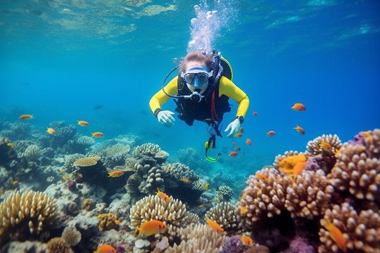 在大堡礁的海域中,潜水是一项不可或缺的活动。我穿上潜水装备,跃入清澈的海水中,开始了一次奇妙的探险之旅。在水下世界中,我仿佛置身于一个神秘的童话世界,身边是一片片华丽的珊瑚礁,而鱼群在我身边游弋,犹如一群欢快的精灵。我沿着海底缓缓游走,发现了许多隐藏在珊瑚中的海洋生物,它们或悠然自得地游弋,或躲藏在珊瑚的缝隙中,生机勃勃的海底世界令我陶醉不已。