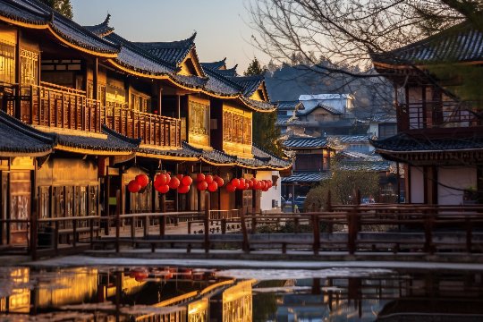 丽江古城作为世界文化遗产,拥有独特的建筑风格和浓郁的民族风情。石板路旁的小溪和高低小巷,展现出丽江古城的韵味。在这里,您可以穿着婚纱在古城的小巷漫步,拍摄一组充满古朴气息的婚纱照。此外,古城夜景同样迷人,灯火通明,热闹非凡,为您的婚纱照增添一份浪漫氛围。