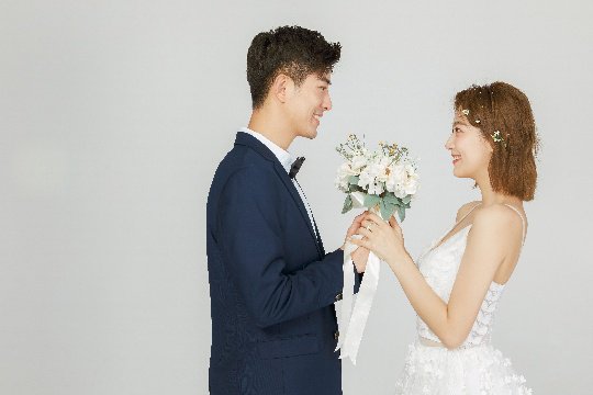 极简婚纱照的画面往往以纯色为主,如白色、灰色、黑色等。这些颜色不仅具有高级感,还能营造出静谧、温馨的氛围。在这样的背景下,新人的情感表达更加突出,互动更加自然。简约的婚纱照,让人感受到爱情的质朴与真挚。