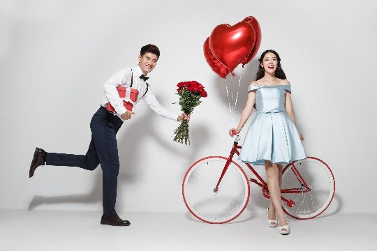 最后一种创意婚纱照的表现形式是趣味互动,这种风格轻松幽默,充满生活气息。新人可以尝试各种有趣的角色扮演,如卡通人物、动物等,或是模仿经典电影场景,让婚纱照充满趣味性和互动性。这样的婚纱照既能展现新人的活泼性格,又能让人在轻松愉快的氛围中感受到他们的幸福。