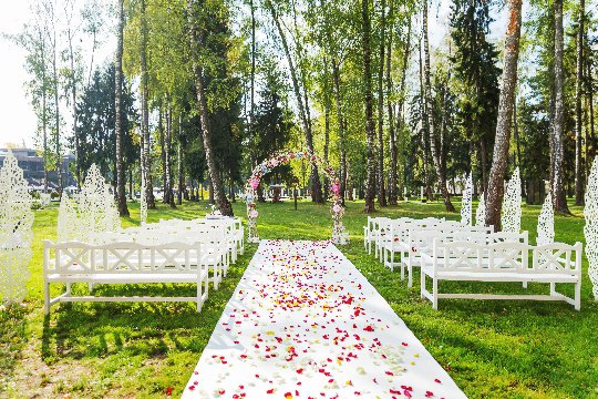 古堡婚礼的布置,首先要突出古堡的历史感和氛围。在色调选择上,可以选择一些经典的颜色,如深红色、黑色、金色等,这些颜色能够与古堡的历史感相得益彰。同时,也可以利用古堡的一些特色元素,如古老的壁画、雕刻、石墙等,来进行装饰,使得婚礼现场更具有古堡的特色。