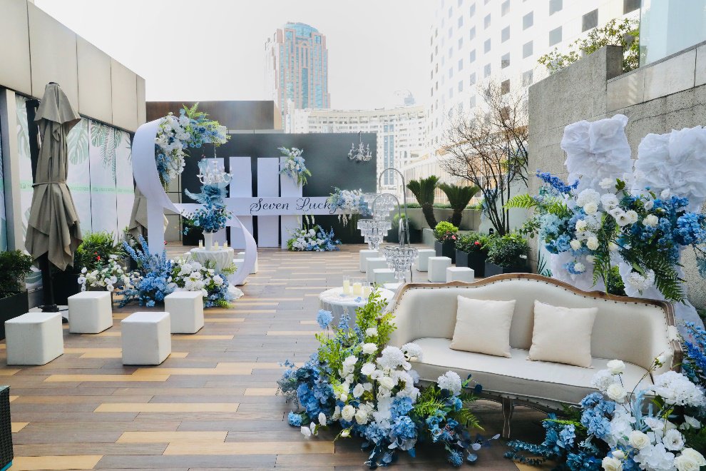 上海建国宾馆坐落于繁华商业区徐家汇中心,拥享大小不同、风格迥异的婚宴厅堂,楚庭阁典雅含蓄,是举办中小型婚礼的理想选择。其中修葺中的5楼露天花园,在将来可举办证婚仪式、迎宾酒会等相关活动。优越的地理位置将徐家汇的美景尽收眼底,必将成为浪漫婚礼中的珍贵记忆。