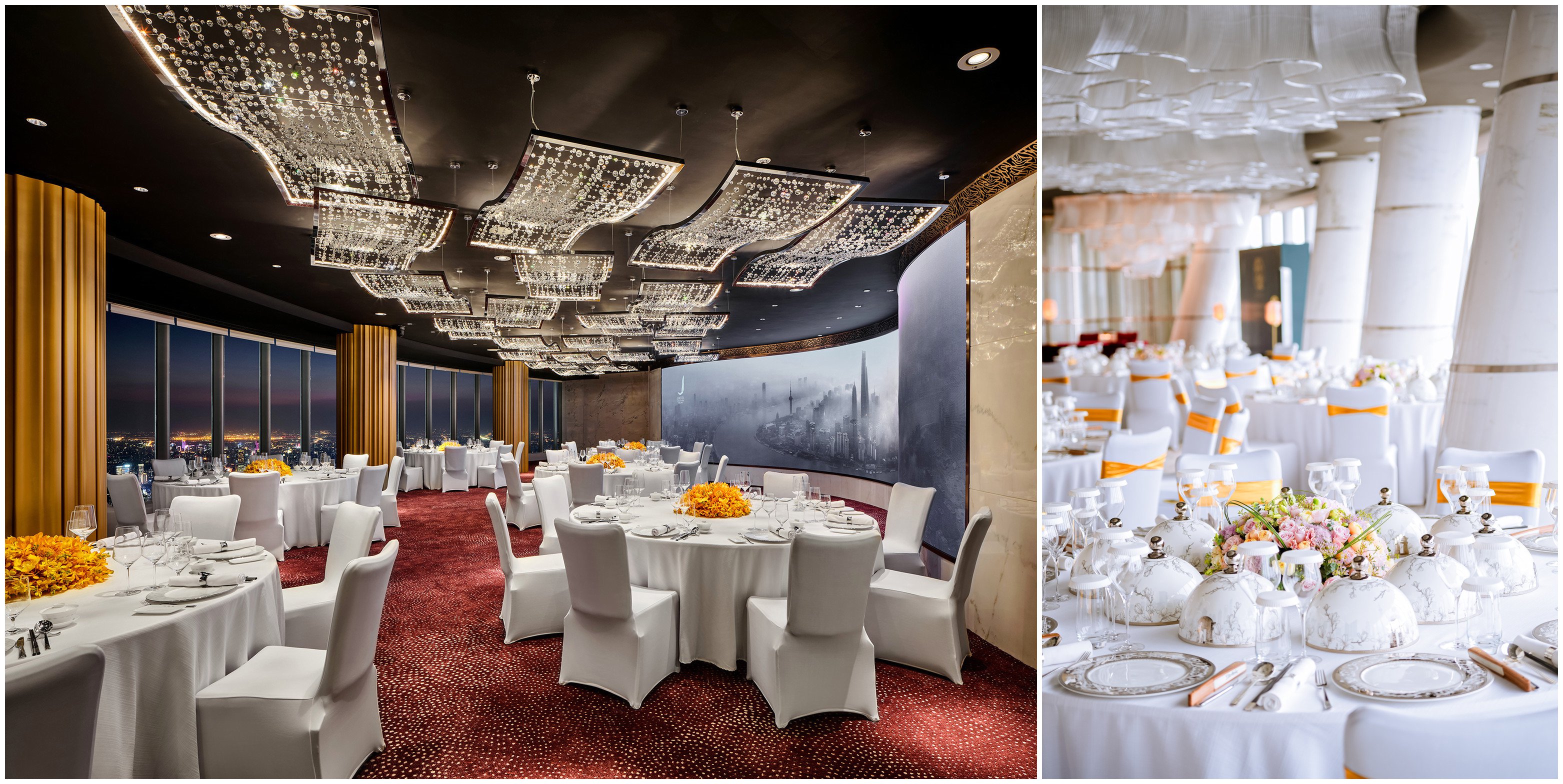 天作之合,庆贺重要时刻。华丽云集,碰撞不凡未来。于J酒店上海中心百米高空,见证非凡浪漫婚典, 记录成长足迹。J酒店上海中心利用浪漫写意及现代美学的设计手法呈现如梦似幻的场景,为宾客打造永生难忘的浪漫婚宴、宝宝宴或生日宴,伴着窗外繁华的都市与浦江两岸壮丽美景,演绎“会当凌绝顶”的云端体验。专业的婚庆、宴会与会务活动团队为客人提供一站式服务,根据宾客需求,整合酒店各方资源,如豪华车接送、全定制菜单、侍酒师服务等,为宾客打造一生难忘的精彩回忆。