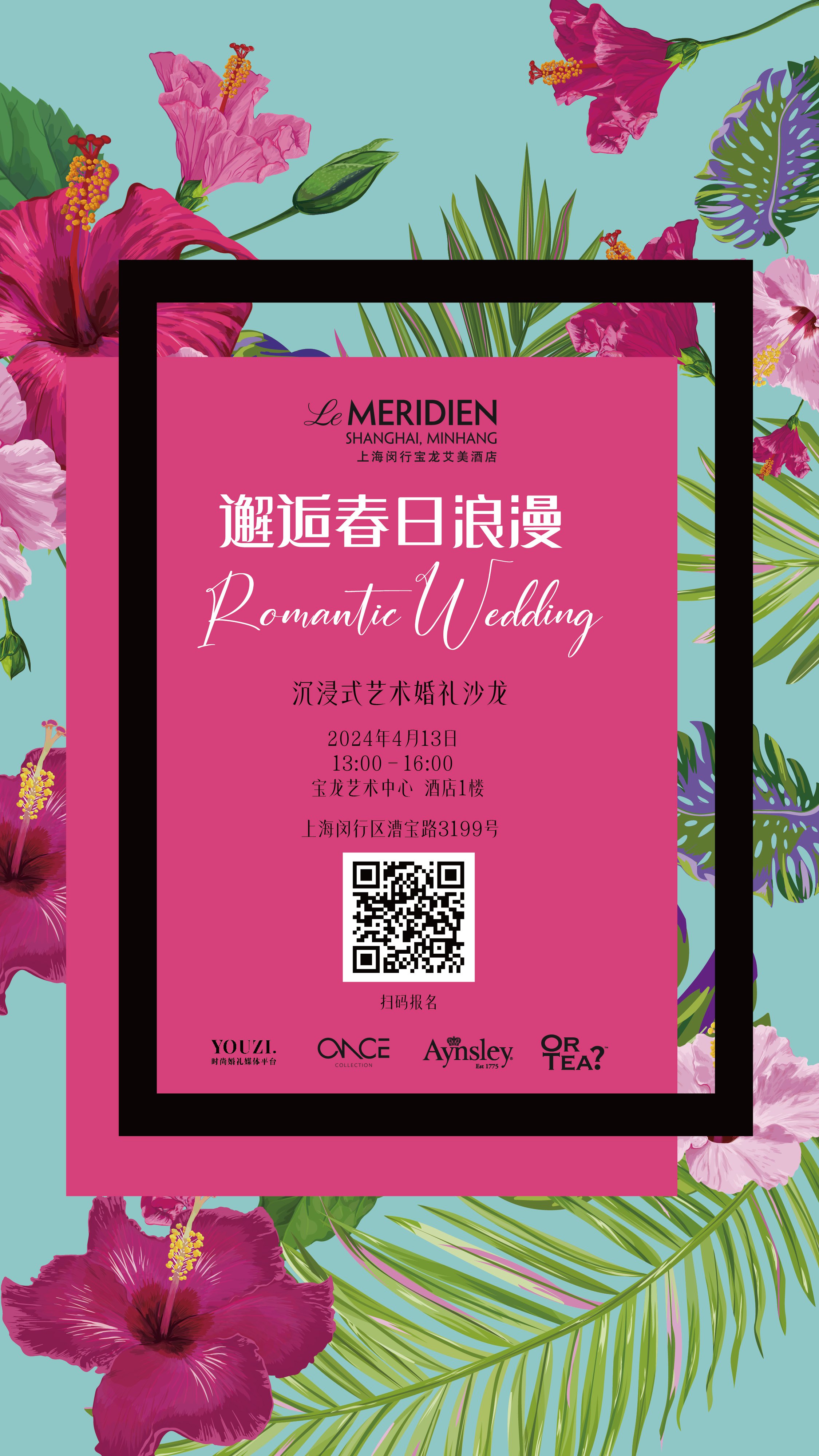 春风拂面,万物复苏,正是浪漫邂逅的美好时节。2024年4月13日下午13:30,我们诚挚邀请您莅临上海闵行宝龙艾美酒店一楼艺术中心,共在这个春日午后感受艺术世界的同时,也一同见证一场别开生面的沉浸式婚礼沙龙。在这里,您将亲身体验到婚礼的浪漫与甜蜜,感受那份属于两个人的独特幸福。
