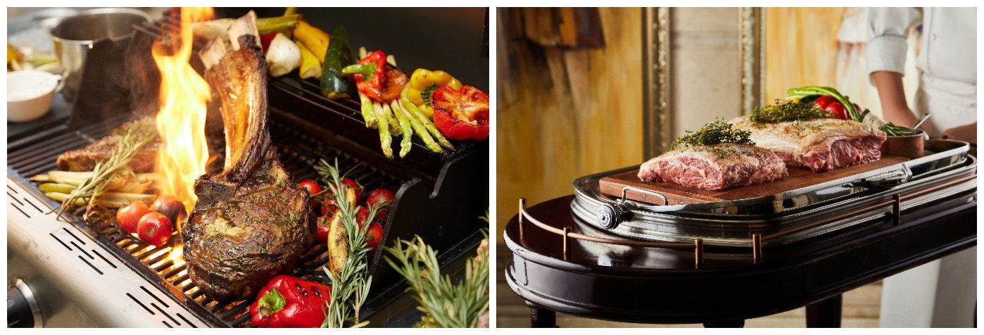 此次,华丽早午餐融入岩烤推车系列。厨师的澳洲上选西冷/肉眼牛排是不容错过的美味,宾客可根据自身需求任选薄切或厚切,牛排在300℃的高温火山岩板上滋滋作响,在炙烤中不同熟度的鲜美。