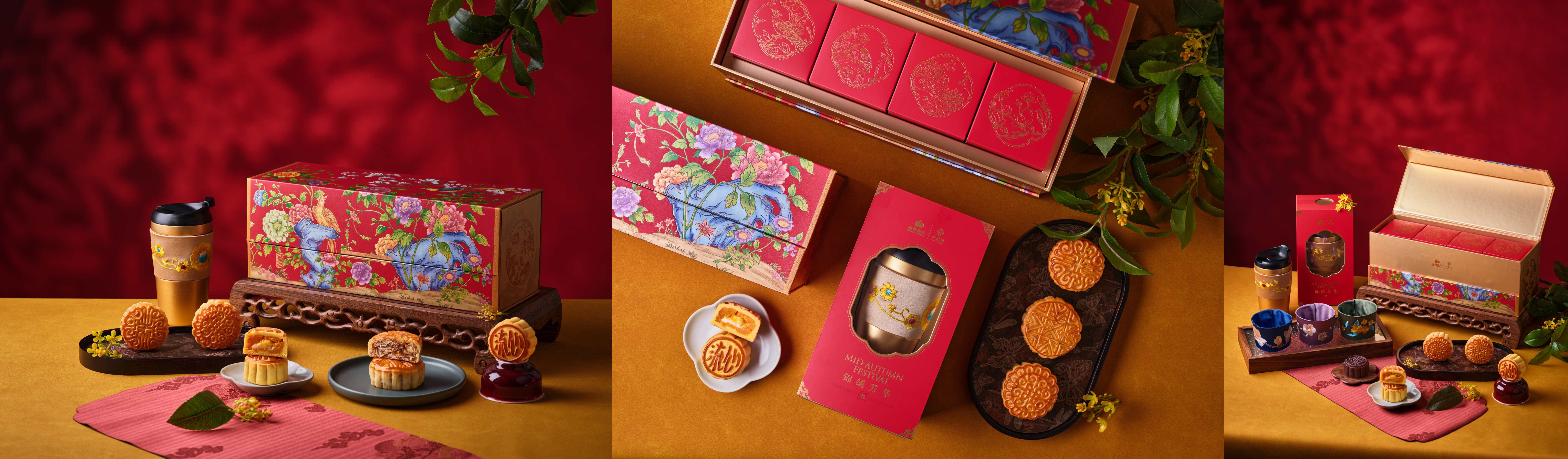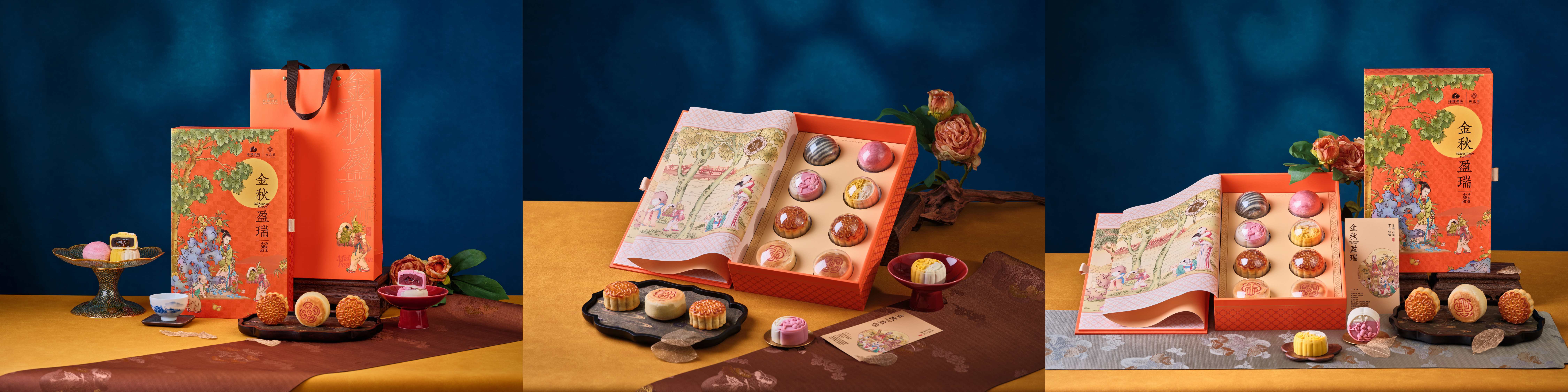 「金秋盈瑞」以《中秋佳瑞图》为原型设计,融入中秋团圆意象的圆形瓜果、石榴,及秋日梧桐树、桂树等元素,打造出充满创意与温馨的中秋礼盒。礼盒创新呈现多重风味,8 种口味各有千秋,口感丰富、馥郁留香。