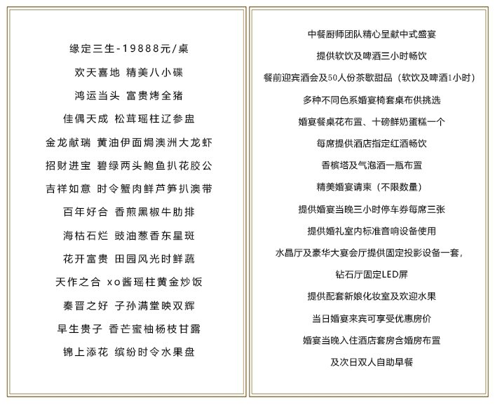 酒店拥有总面积高达3,125平方米的综合性会议场地,包括750平方米的豪华宴会厅、4间385至480平方米不等的宴会厅、一家350座的剧院厅、7个多功能厅,还拥有多大1,000个的停车位。作为浦西地区首屈一指的会务设施及专业团队,上海静安洲际酒店为您的会议和宴会活动提供灵活多样、细致全面的服务。酒店的4个多功能厅和1个大宴会厅,是您婚宴的理想之选。无论是西式的浪漫还是中式的隆重,上海静安洲际酒店都能协助您完美诠释一场终身难忘的婚礼庆典。
