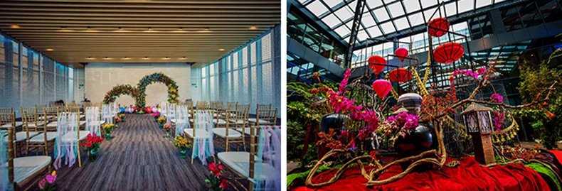 上海五角场凯悦酒店拥有设备完善的婚宴场地和专业的婚宴策划,旨在为每一对新人缔造难忘的婚宴体验。位于酒店7楼的大宴会厅,774平方米的宽阔空间,采用无柱设计,自然采光,更配有专属新娘化妆间。酒店7楼的沁亭礼堂适合举办别致的婚礼,可容纳160名客人。新人们可以选择在精心修剪的草坪上宣誓结婚,也可以在充满自然光的沁亭内举办仪式。 沁亭雄踞城市上空,配备顶级音响视频设备和宴会设施,适合举办绚烂婚礼和时尚派对。中庭花园让新婚的祝福和爱恋在“中式园林设计的世外桃源” 中蔓延。更有凯悦大厨精心准备的美食,让幸福五味俱全!