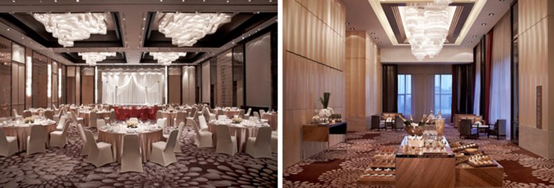 上海金桥红枫万豪酒店(Shanghai Marriott Hotel Pudong East)拥有两个婚宴场地。三楼多功能厅现代典雅,非常适合浪漫清新的中小型婚礼,音乐响起时,眼里只有您。五楼宴会厅奢华大气,璀璨典雅的水晶灯更添贵气,为您的婚礼锦上添花。宴会厅休息区域宽敞明亮,坐拥自然采光,夕阳西下之时,在此迎接宾客或举行餐前鸡尾酒会都将成为幸福记忆的亮点。享誉盛名的行政总厨及专业团队为您订制专属婚宴菜单,更有贴心试菜服务,让您信心满满款待您的至亲好友。