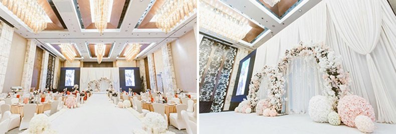酒店2楼宴会厅,及3楼多功能都采用无柱设计。2楼大宴会厅层高达到7.8米,整厅宽敞而明亮。厅内还有LED屏可供选择。酒店地理位置佳步行5分钟可到达12号线虹梅路站及9号线漕河泾站,由于座落于中环旁,开车也十分方便。2楼大宴会厅同一时间段只接待一场婚礼所以私密性,独立性极佳。