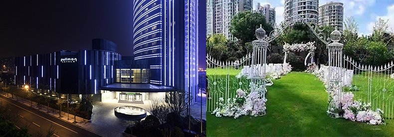 法国雅高集团旗下的上海中星铂尔曼大酒店位于徐汇新商业区的中星城内,其建筑风格融合现代感与极简风,称得上是徐汇中城一颗耀眼的明珠。酒店毗邻徐家汇商圈,上海南站、地铁1号线、3号线及15号线近在咫尺,便捷可至。瑰丽大气的无柱式宴会场地,粤菜名厨定制婚礼菜单,灵活多变的仪式场地以及资深婚礼专家,我们为您精心打造梦想中的婚礼。无柱式大宴会厅设计典雅瑰丽,宽敞开阔,独具气派与格调,面积达1,300平方米,可容纳多至70桌精美喜宴,缔造现代时尚的精致婚礼,定会让宾客眼前一亮。高楼林立间,近1,000平方米的稀有“绿洲”,绿茵环绕着修建整齐的花园,精心准备的每一处细节为您精心打造美轮美奂的草坪婚礼、证婚仪式以及庆祝仪式等,天空为头纱,草地做嫁衣,一次满足您对于婚礼的全部愿望。333间舒适高雅的客房及套房,室内恒温泳池及健身中心,中式、西式及日式3个餐厅,1个大堂酒廊及行政酒廊,满足客人挑剔的味蕾,是一天忙碌后放松心情、愉悦身心的优质选择。