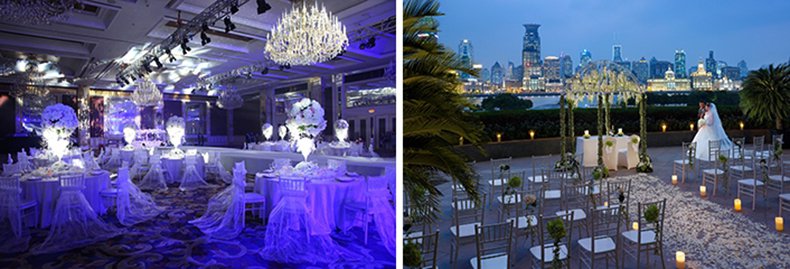 酒店总共能够提供高达7,600平方米的室内外活动场所,可满足各类活动的需求。其中两间无柱式宴会厅大宴会厅和盛世堂分别可容纳1500人和1700人进行各类宴会、鸡尾酒会等。而大宴会厅全部装饰以水晶吊灯,打造奢华而晶莹剔透的梦中香格里拉,象征纯净、不染瑕疵的真爱。在浦东香格里拉,婚宴专家全程一对一答疑并提供一站式的婚典服务,包括了从帮客人挑选适宜的婚宴场地,策划婚宴主题,安排婚宴节目,设计婚宴菜单到选择新娘礼服及礼品……酒店深知婚礼上每一分钟、每一细节对于新人的重要性,酒店专业的婚宴专家将全程跟踪,让每一对新人梦想成真,找到心目中的那片“香格里拉”。而酒店得天独厚的地理位置也将上海浪漫的景色毫无保留地全部奉上眼前。在黄浦江畔,璀璨外滩前,城中独特的临江露天平台是举行婚礼仪式的梦幻佳境,与另一半诚心许下爱的誓言,此时此景永藏于心,即使多年后回首,仍是不禁欣喜若狂而又泪流满面。