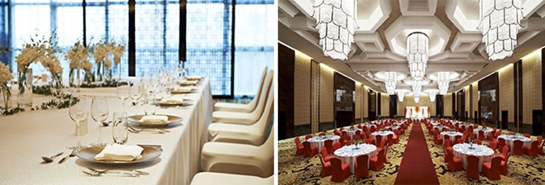 上海外高桥喜来登酒店位于外高桥自由贸易区中心地带,酒店独具特色的摩登中国风当代艺术装饰风格,在外高桥地区独树一帜、脱颖而出。无论是彰显海派风情的传统中式婚礼还是温馨典雅的摩登西式婚礼,皆可在此圆满呈现。从菜单到摆台到主题设定,无论您是特色创新派、精致华丽派还是飘逸唯美派,专业的婚宴团队都能满足您的要求,为您打造铭记一生的独有浪漫。恢宏气派的1000平方米、8.6米层高无柱型超大宴会厅,可容纳60桌,地毯上的大团富贵牡丹与墙上金丝绣成的牡丹遥相呼应,配以水晶花瓣吊灯,把品质与奢华融入每一寸细节,必将是您举办婚礼的首选之地。