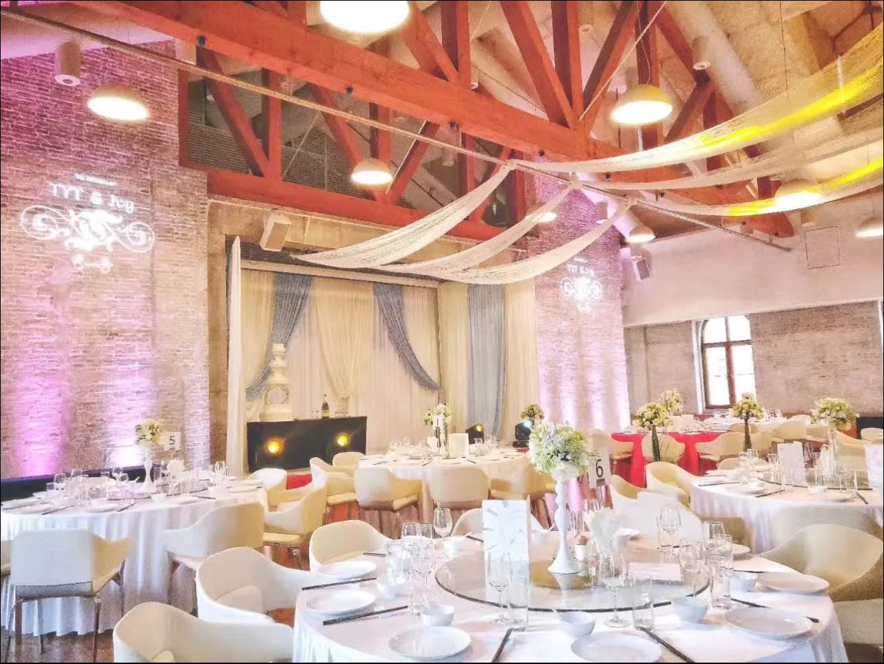 日景时玖所在的南京东路23号(外滩19号)和平饭店南楼,现为斯沃琪和平饭店艺术中心。其前身汇中饭店,创设于1875年,曾经是上海租界时代最著名的大型豪华饭店之一。大楼5楼日景空间宴会厅可以摆放8-15桌圆桌宴会;6楼江景露台更能为新人提供独一无二的户外体验。
