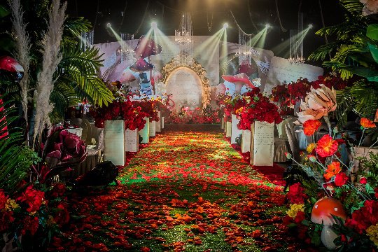 在婚礼布置中,水晶吊灯是一种经典而又令人叹为观止的装饰元素。它们散发着璀璨的光芒,为整个场景增添了奢华和浪漫的氛围。水晶吊灯不仅令人眼前一亮,更能够让婚礼场地焕发