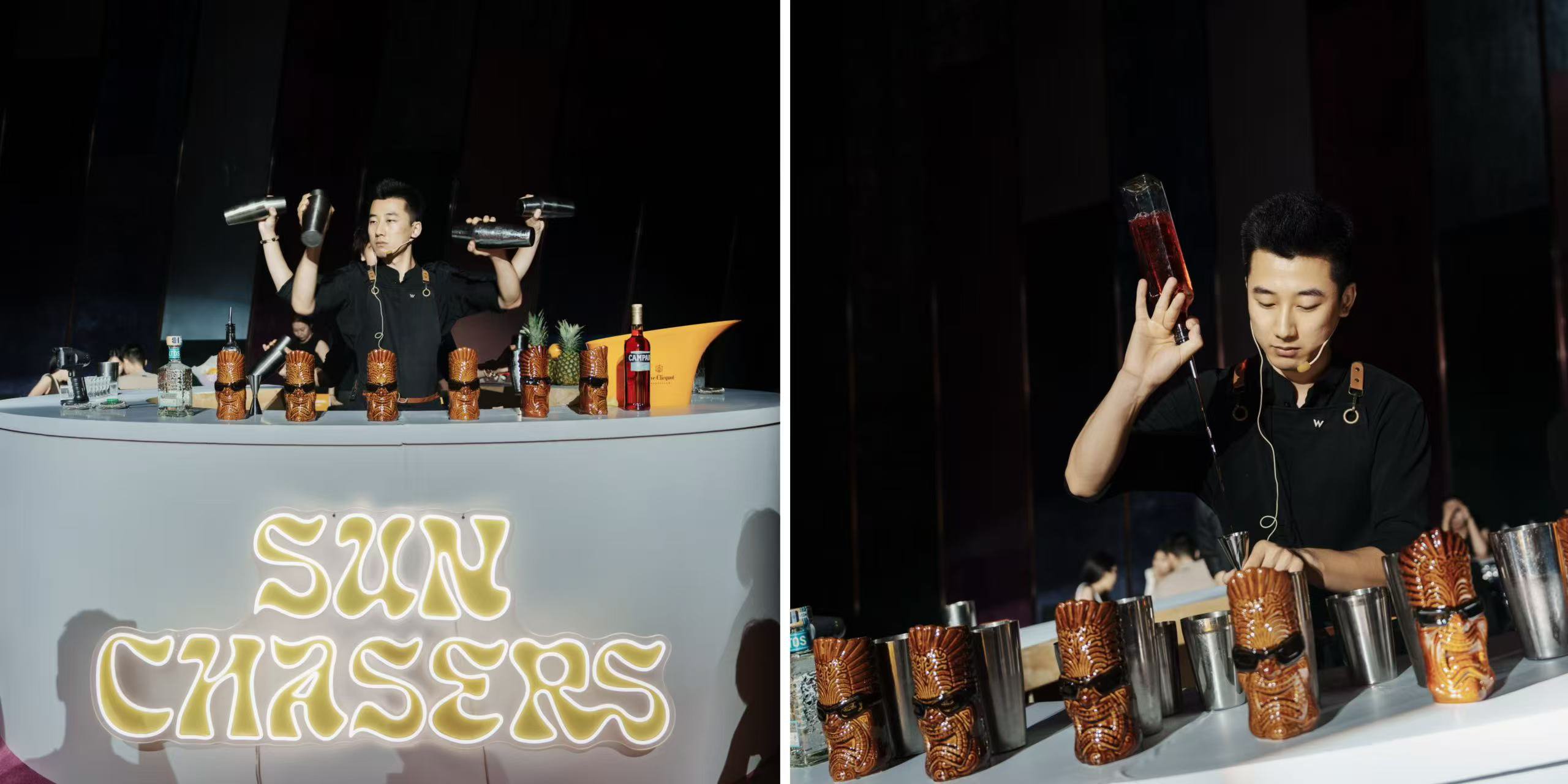 首席调酒师Leo呈现的创意调酒秀成为焦点。灯光下摇曳的调酒壶中,追光逐夏系列鸡尾酒之“烛瓜晚宴”将西瓜、罗勒与烟熏龙舌兰风味巧妙碰撞,带来微苦回甘的层次感。每款特调既彰显W品牌突破常规的创造力,亦传递即刻享乐的活力哲学,令宾客在味蕾悸动中领略W鸡尾酒文化的精髓。