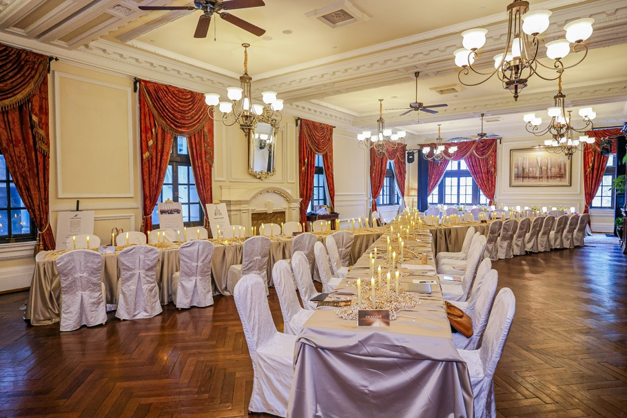 本次婚博会以「华灯初上」为主题,灵感源自上海华灯初上的浪漫时分——当夕阳余晖与城市灯火交织,爱与承诺在璀璨光影中绽放。主会场设于见证百年风华的上海外滩华尔道夫酒店上海总会大楼。这座建于1911年的上海总会,历经岁月沉淀,曾是远东最负盛名的社交殿堂与名流汇聚之地。标志性的廊吧以“远东第一长吧”闻名于世,百年廊柱、水晶吊灯、拼花地板与复古木饰,每一处细节都诉说着昔日优雅与荣光。如今,新人们将在这座承载着传奇历史的建筑中,于时光交错的氛围里,精心挑选属于人生中最珍贵的浪漫篇章。活动现场打造了沉浸式互动体验,汇聚宴会策划、婚纱礼服、四大服务及伴手礼等专业展区,一站集结婚尚全产业链优质资源。从场地灵感到执行细节,从创意呈现到专业服务,各大展位分区明晰、品类齐全,让新人在移步换景间高效领略多元选择,将婚礼的筹备延展为一场全方位、可感知的感官之旅。