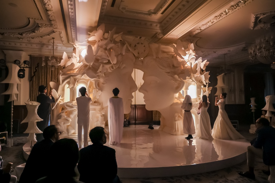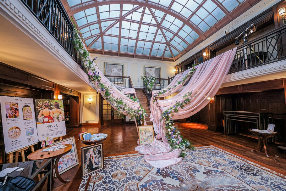 移步万卷廊,画师将以速写笔触为新人记录当下最动人的瞬间;浦江汇内设有花艺工坊,宾客可根据不同花语挑选鲜花,亲手制作一束独一无二的捧花;而在上海总会厅,一场沉浸式舞台剧《左右》将倾情上演,以专业演绎与光影叙事,营造出身临其境的浪漫氛围,让每一位来宾在爱与艺术的交融中,感受婚礼的无限可能。