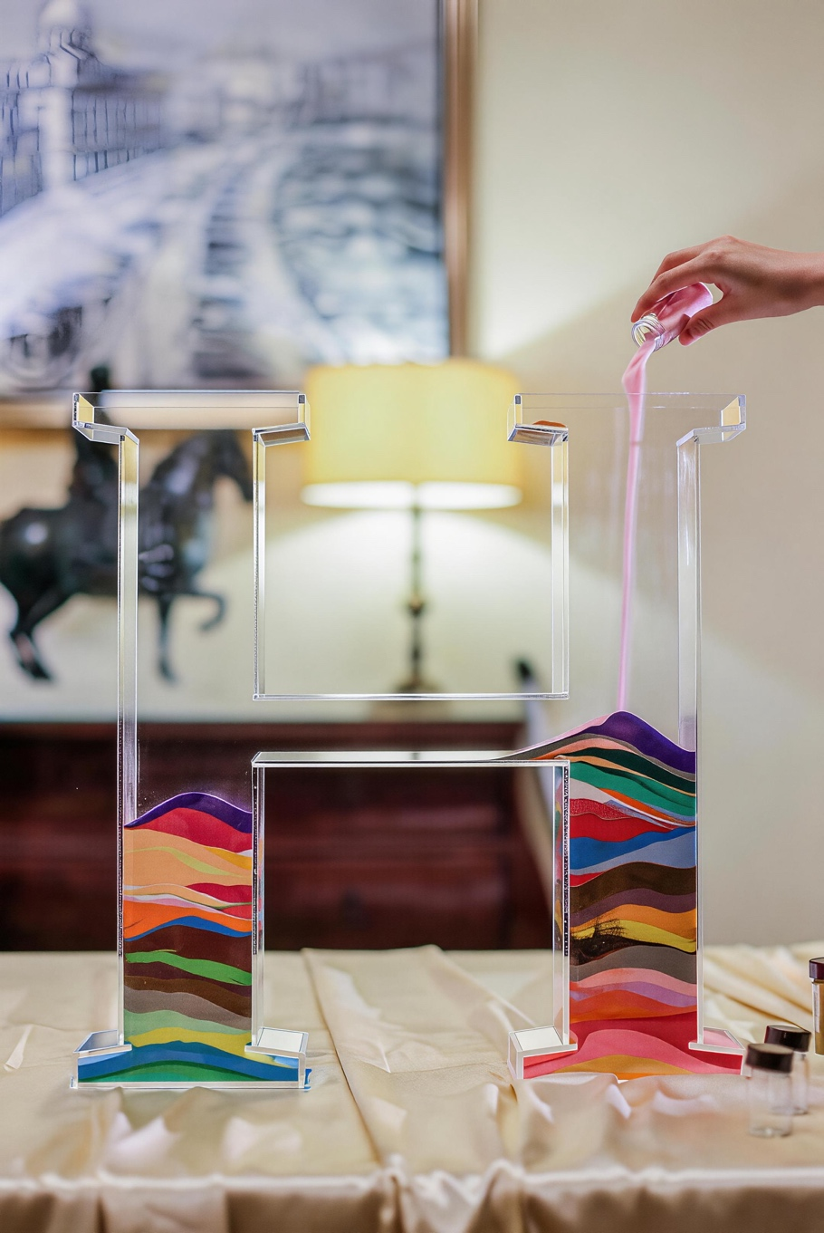 本次婚博会不仅是一场婚尚资源的汇聚,更是一次对希尔顿品牌精神的温情致敬。活动当天,新人将在上海总会大楼的接待区域开启旅程。签到处特别设置了倒彩砂仪式——每位宾客向“H”造型艺术装置中缓缓倒入彩砂,这一笔一画汇聚而成的“H”,正是希尔顿(Hilton)的首字母,象征着每一位新人的祝福与期待,共同铸就希尔顿见证下的无数美好时光。在最终的舞台秀环节,这座承载着全体宾客心愿的装置将被隆重展示,寓意希尔顿百年品牌与每一段爱情故事交相辉映。