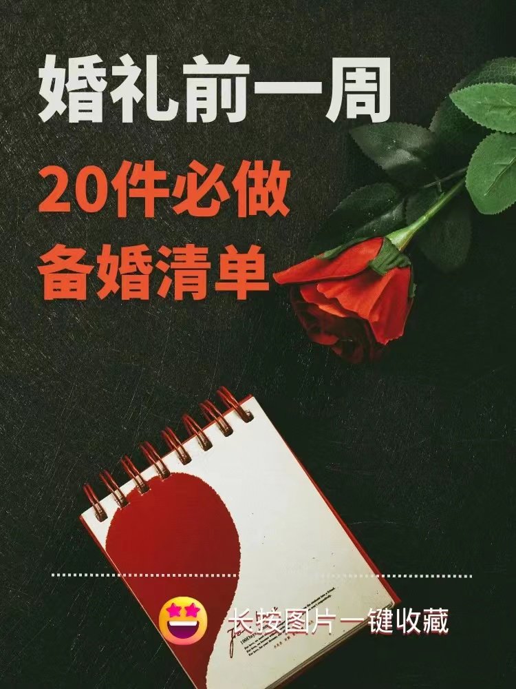 临近婚礼,新人肯定会愈发焦虑,即使已经准备的差不多了,但还是会担心过程有什么疏忽的地方,柚子给大家整理了婚礼前一周必做的20件事,让你婚礼临近不慌乱!