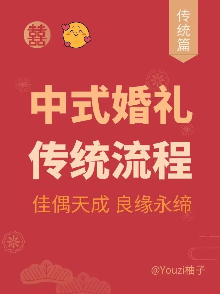 “缔月下之盟,履白头之约。”十里红妆,凤冠霞帔的传统中式婚礼是超多新人们的梦中婚礼,柚子收集了传统中式婚礼的流程,不过是更贴合现代观念的版本,有需要的新人可以收藏备用哦!